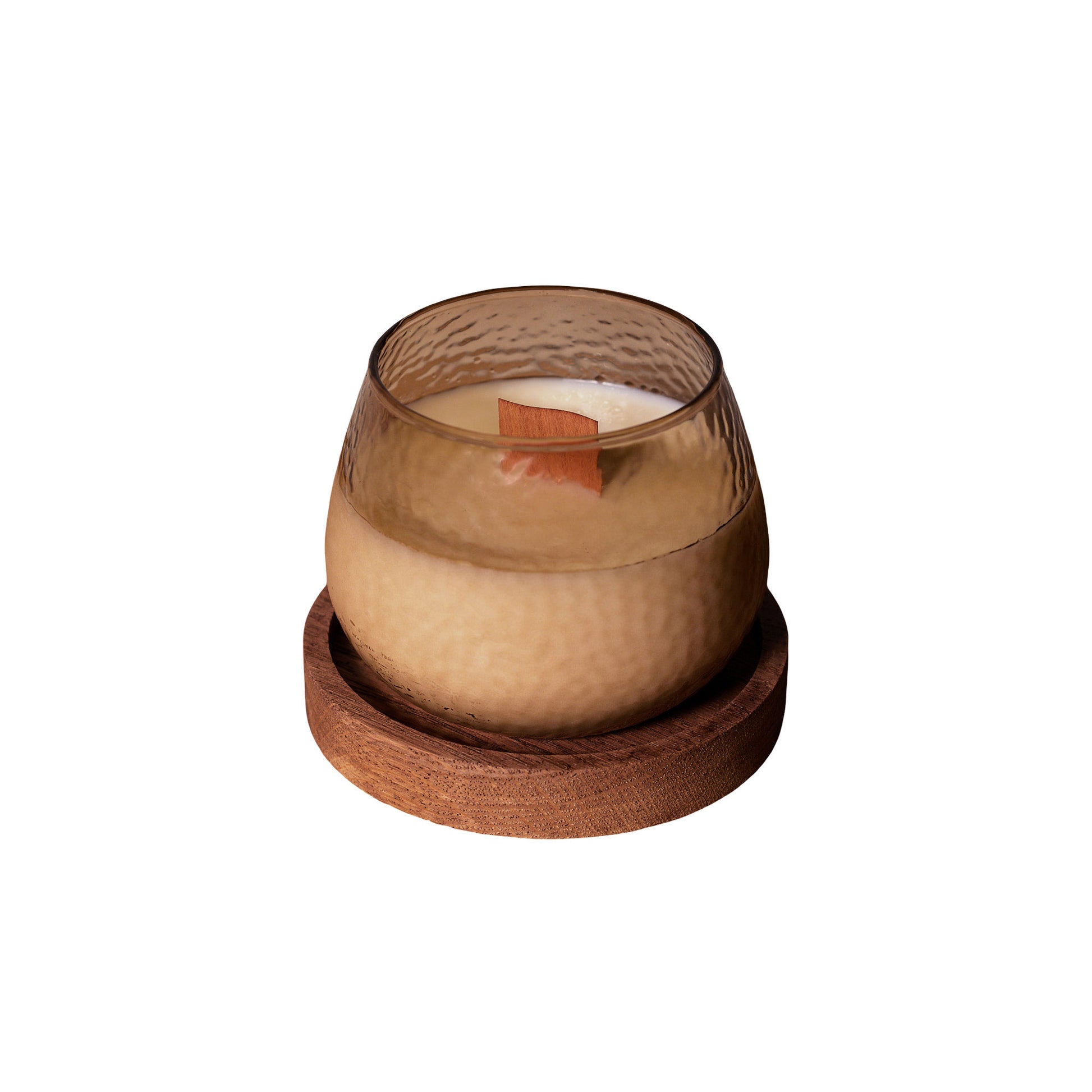 Pasirinkite tik ažuolinę žvakidę arba rinkinį su 280 ml rankų darbo sojų vaško žvake. Pagaminta iš 100% natūralaus sojų vaško, ši žvakė dega lėtai ir tolygiai, ilgai skleisdama šiltą ambros aromatą, kuris suteikia jaukų, šiltą ir raminantį pojūtį. Puikus būdas papildyti namus tiek šviesa, tiek kvapu.