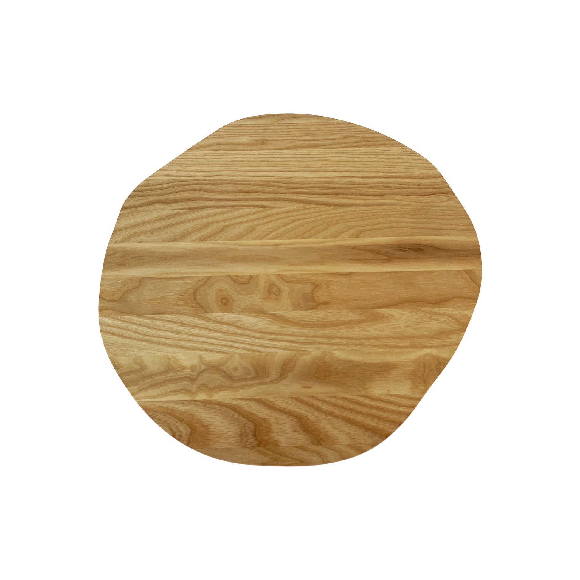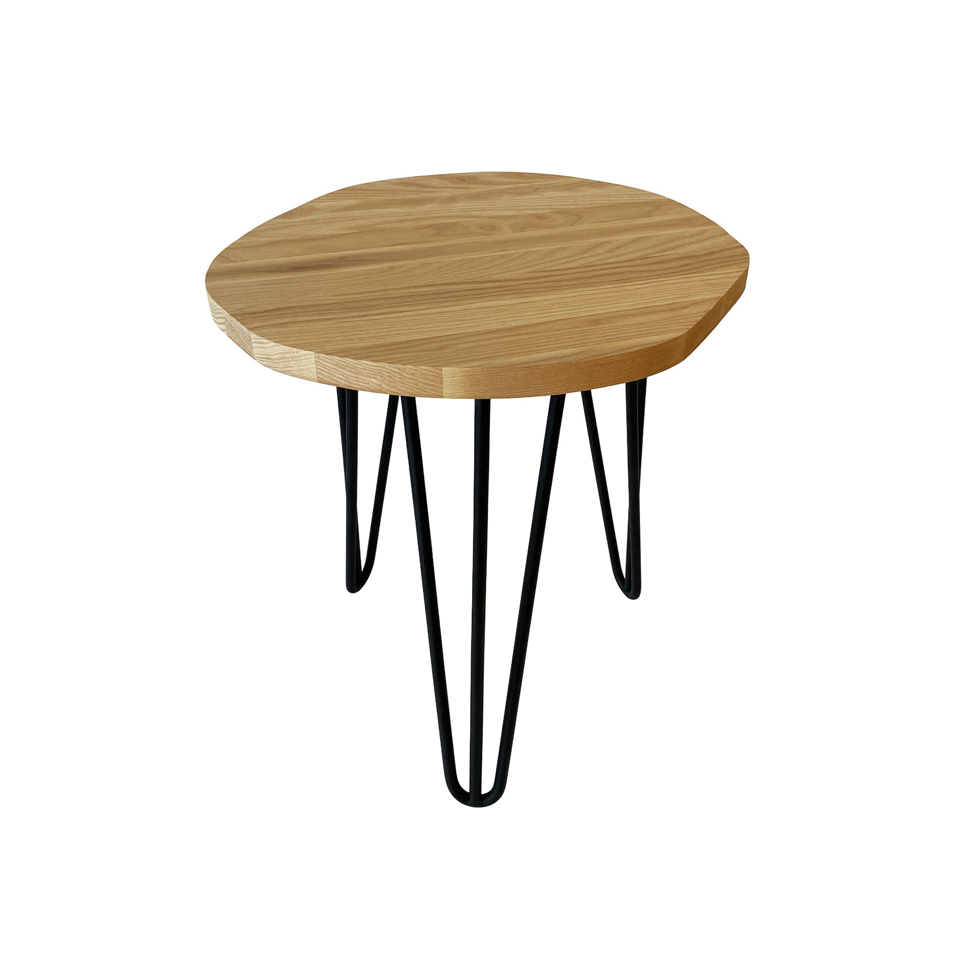 Apvalinto silueto ąžuolinis stalas, pagamintas iš natūralios medienos. Išsiskiria savo subtiliai netobula forma.