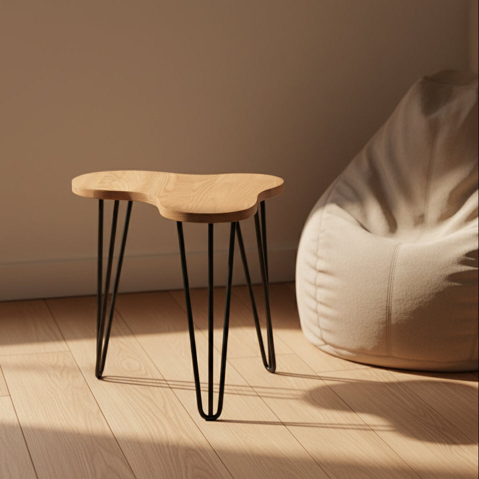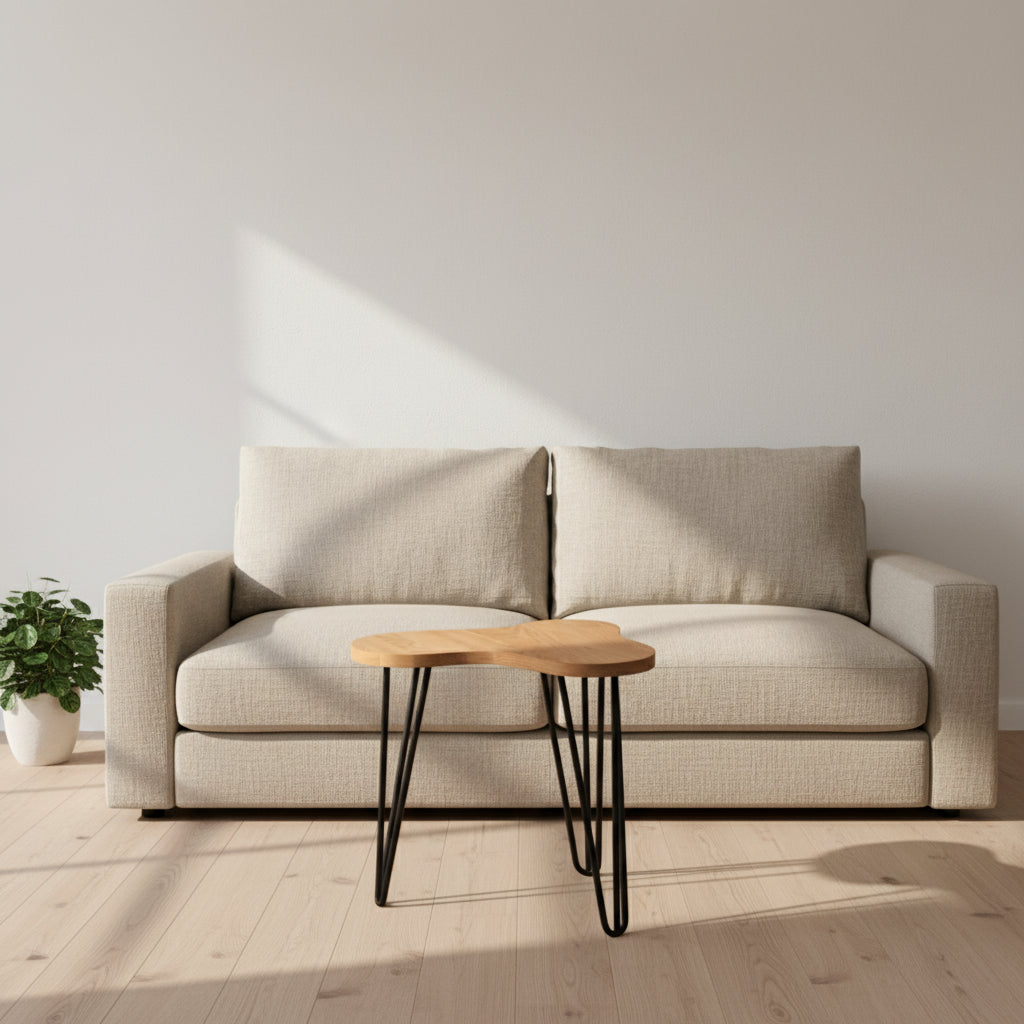 Organinių formų ąžuolinis stalas, išryškinantis medienos tekstūrą ir natūralų grožį. Minimalistinis, bet išskirtinis - sukurtas kaip funkcionalus akcentas šiuolaikiškai erdvei.