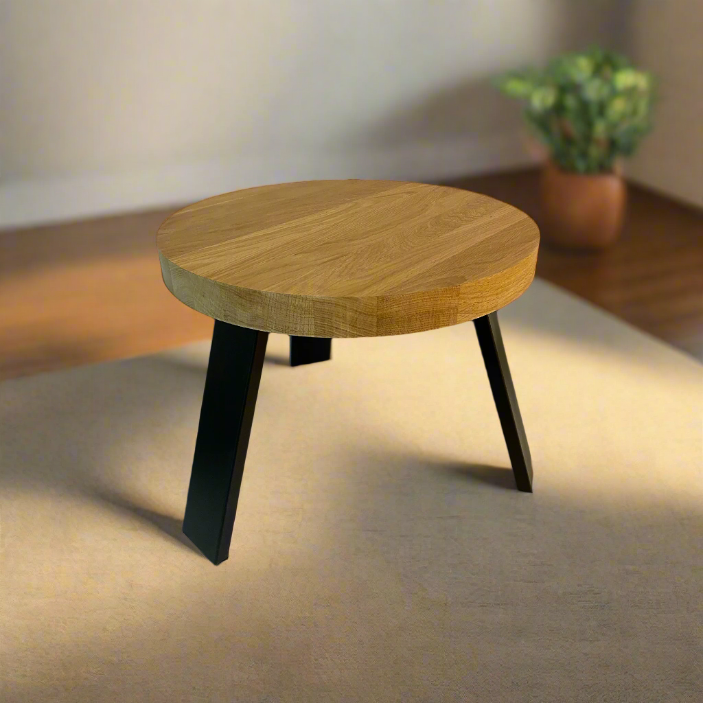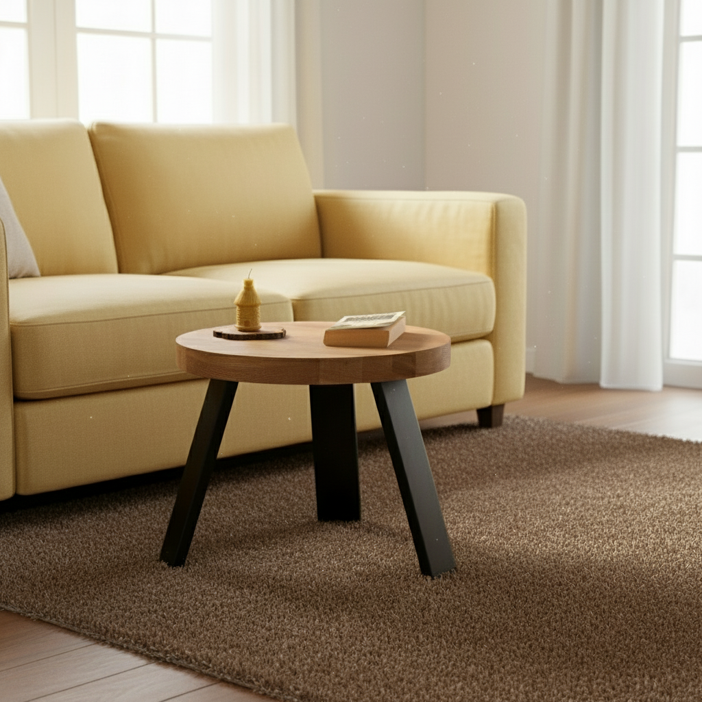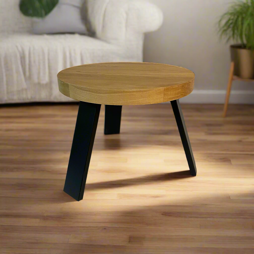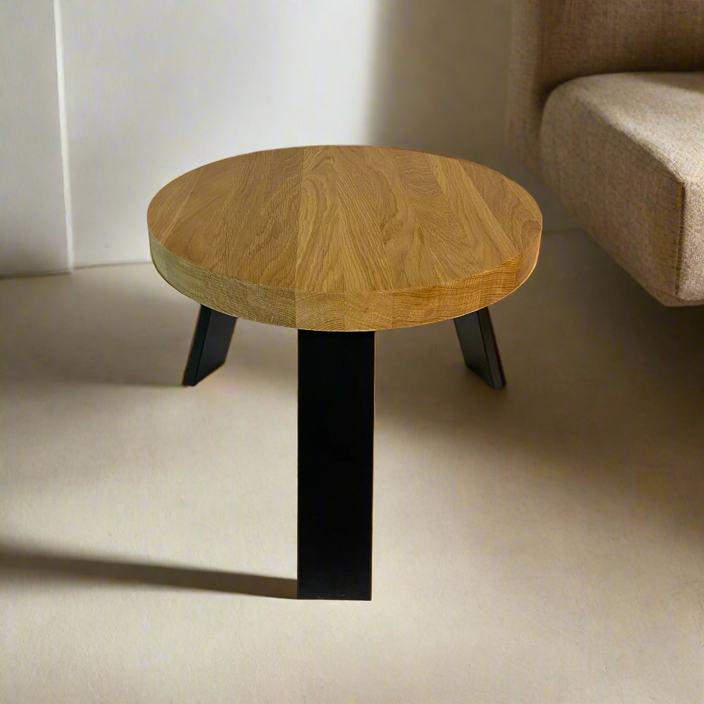 Natūralus medžio raštas ir kontrastingos metalinės kojos. Šis staliukas įkūnija paprastumą, kuris niekada neišeina iš mados.
