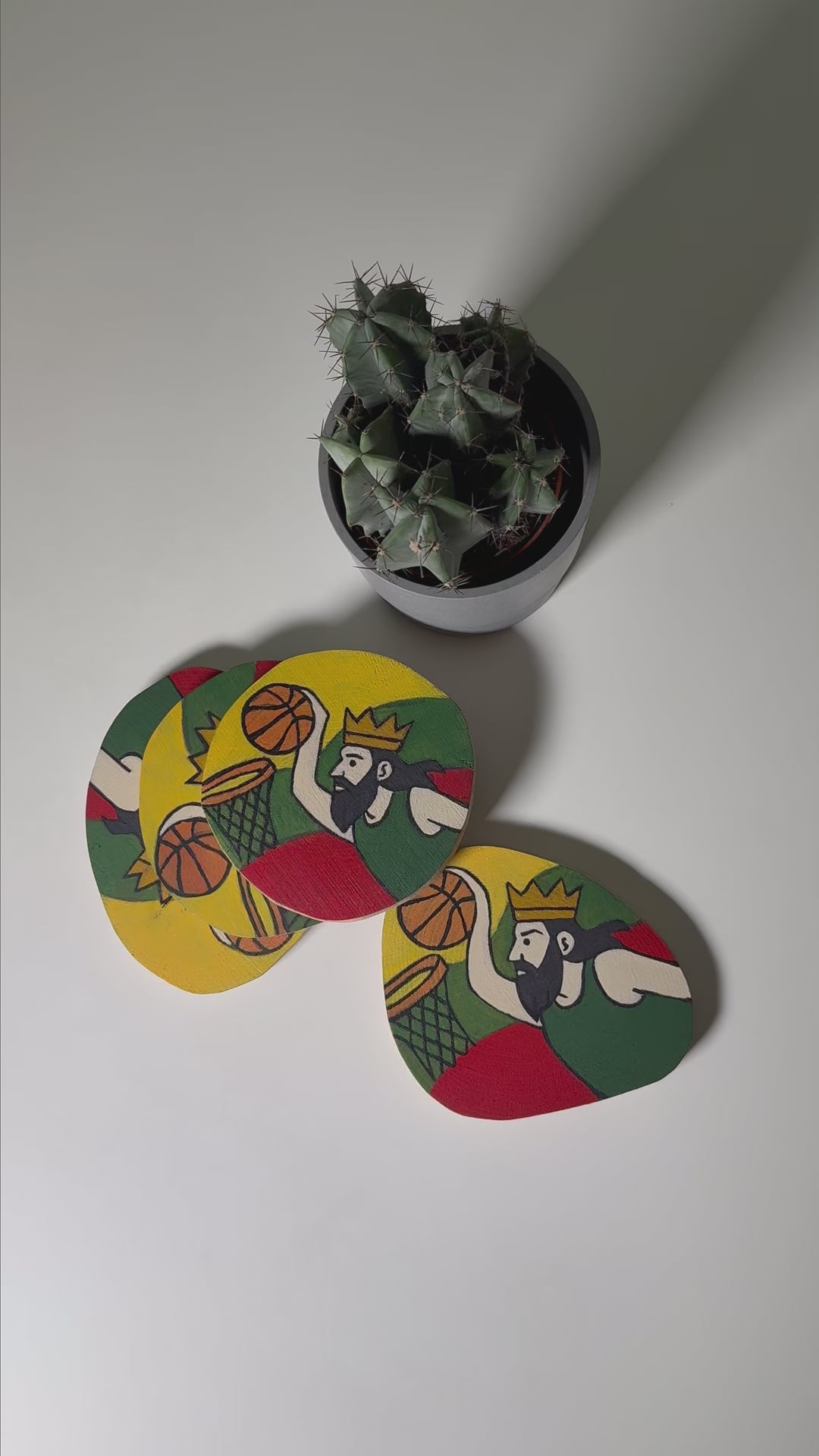 Įkvėpimo sėmėmės iš karaliaus Mindaugo - pirmojo Lietuvos valdovo, tapusio vienybės ir tapatybės simboliu. Jo atvaizdas su krepšinio kamuoliu rankose yra žaismingas būdas parodyti, kad Lietuva keičiasi, bet vertybės išlieka. Kiekvienas rankomis tapytas ąžuolinis padėkliukas - tai nedidelis meno kūrinys, kuriame susitinka istorija, sportas ir šiuolaikinė kultūra.